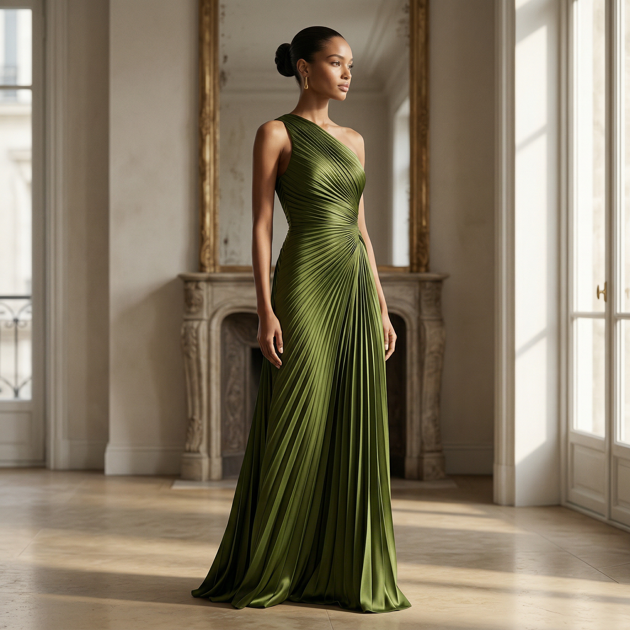 - One-shoulder styling and cut-out at back